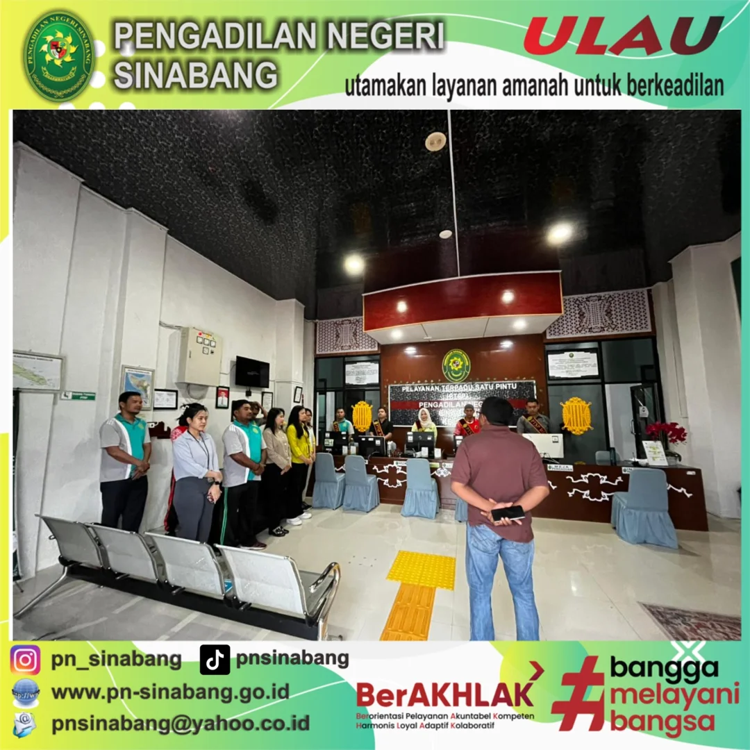Sinabang-Humas: (10/12/2025) Pelaksanaan Briefing Pelayanan Terpadu Satu Pintu (PTSP) pada Pengadilan Negeri Sinabang yang dilakukan oleh Panitera Pengadilan Negeri Sinabang Bpk. Ayon .......