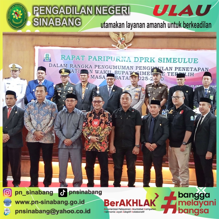 Sinabang-Humas: Senin, 13 Januari 2025 Yang Mulia Ketua Pengadilan Negeri Sinabang yg dalam hal ini diwakili Bpk. Muhammad Alqudri, S.H. selaku .......
