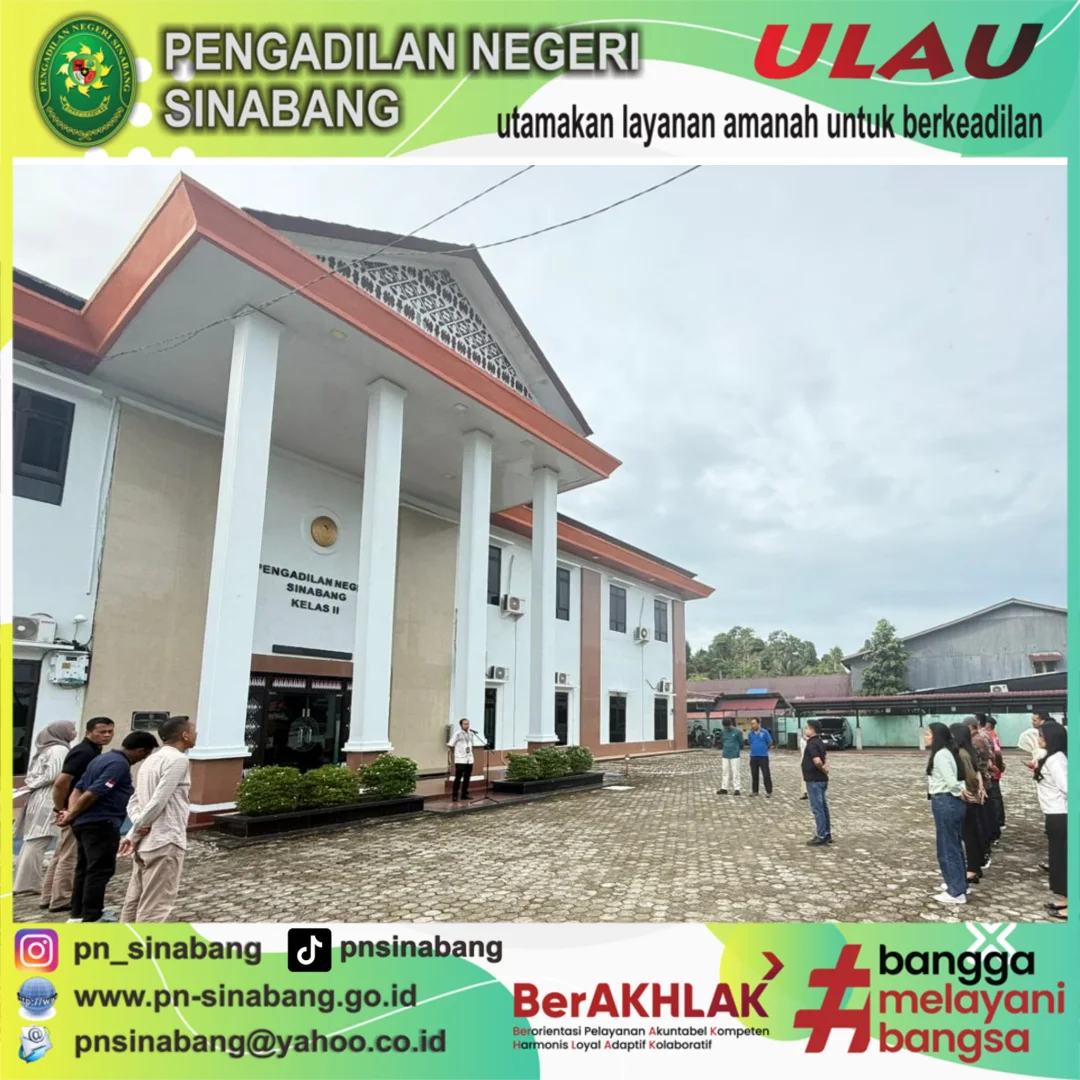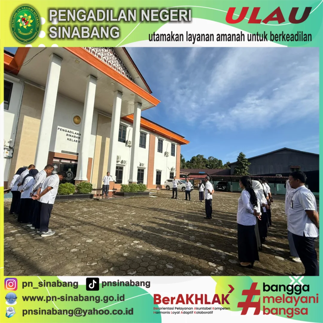 Senin, 27 Oktober 2025, telah dilaksanakan kegiatan Apel Pagi dengan Pembina Apel yakni Panitera Pengadilan Negeri Sinabang Bpk. Ayon Aurifan, S.H. Adapun .......