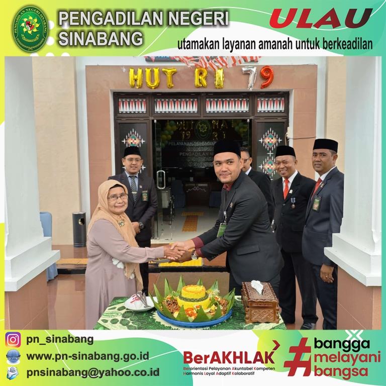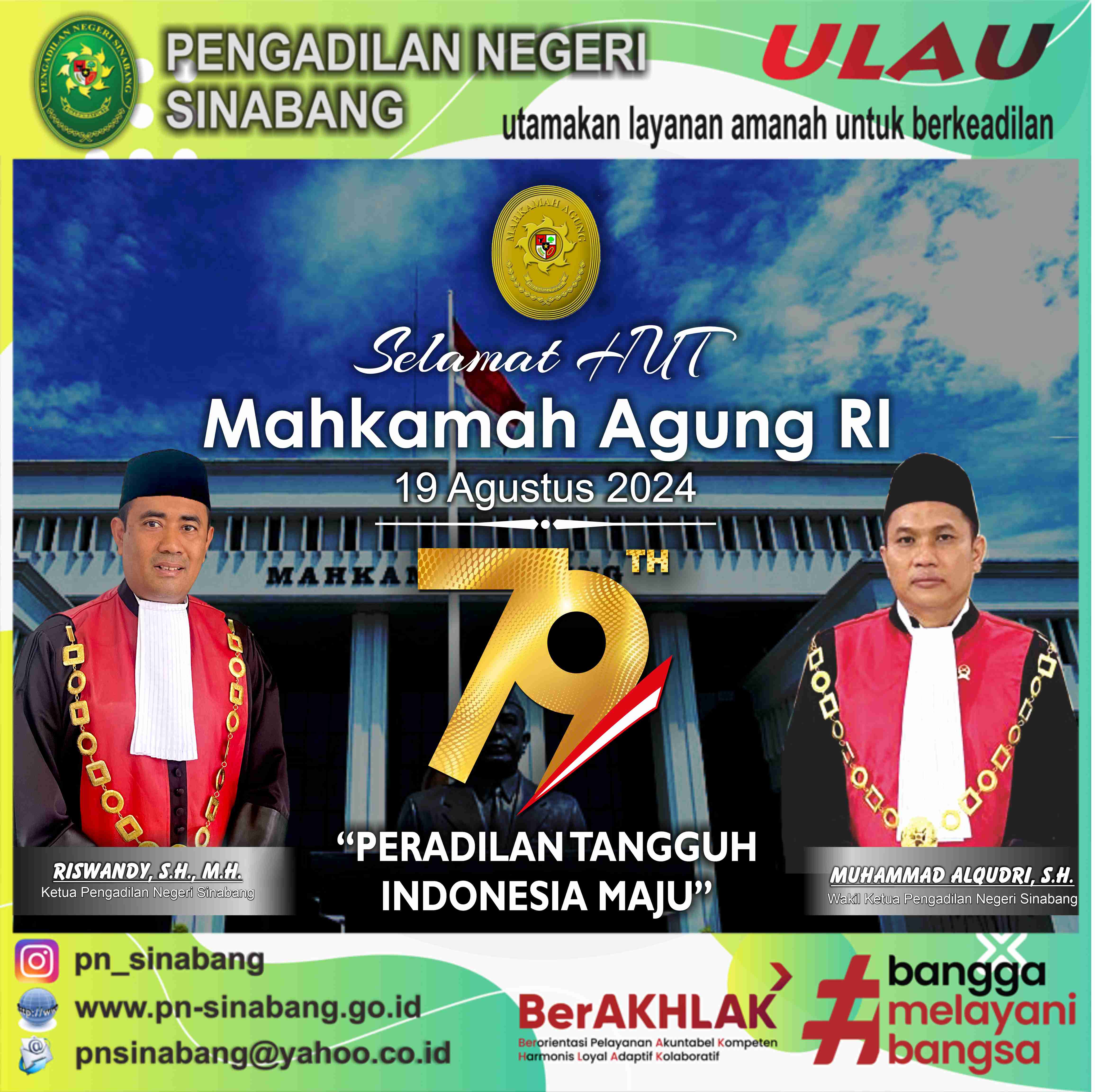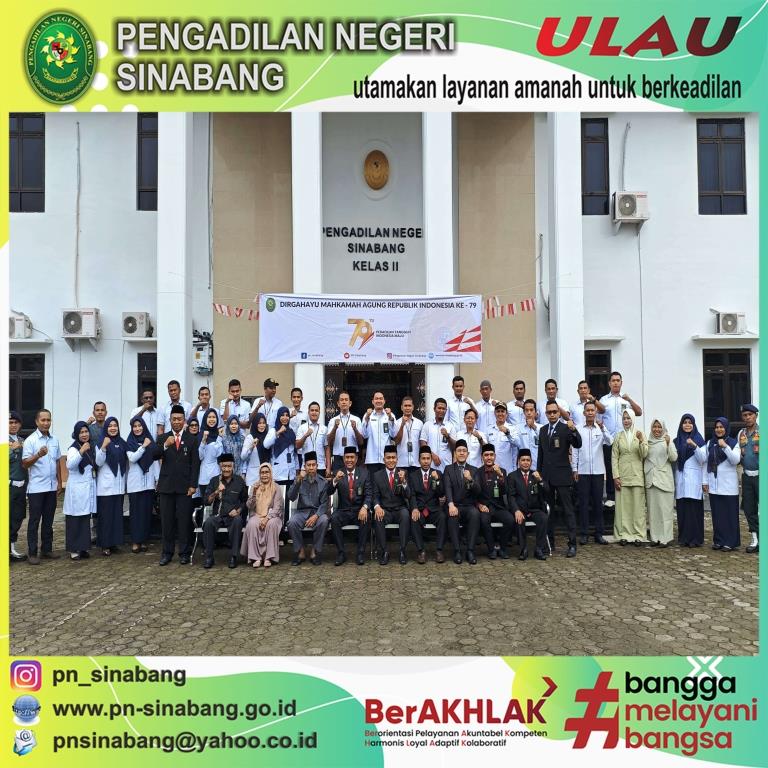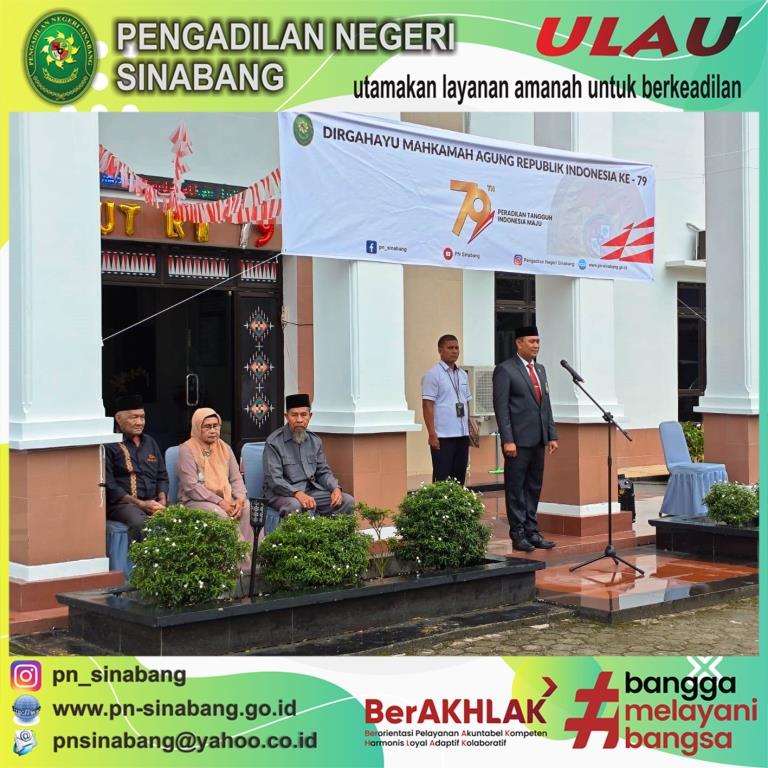Sinabang-Humas: Yang Mulia Ketua Pengadilan Negeri Sinabang dan seluruh jajaran mengucapkan Dirgahayu Mahkamah Agung Republik Indonesia yang ke-79, "Peradilan Tangguh, .......