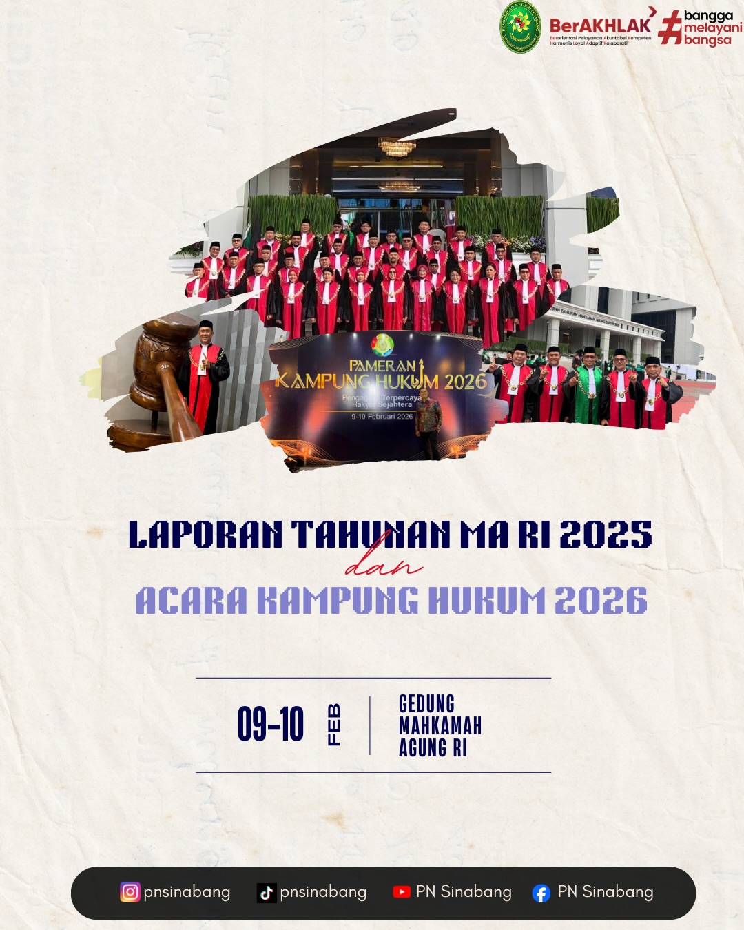 Pelaksanaan Laporan Tahunan Mahkamah Agung Republik Indonesia Tahun 2025 yang dirangkaikan dengan Acara Kampung Hukum Tahun 2026 telah diselenggarakan pada tanggal 09–10 .......