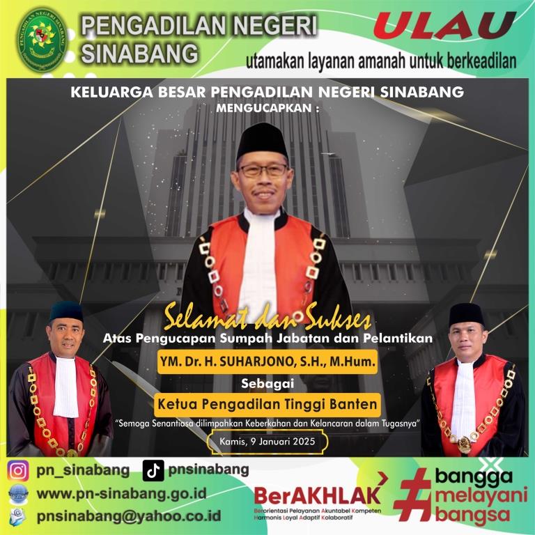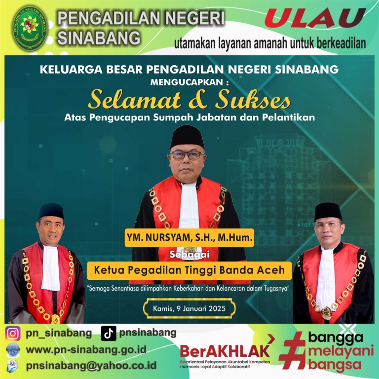 Sinabang-Humas: Pimpinan dan seluruh jajaran Pengadilan Negeri Sinabang mengucapkan selamat dan sukses atas pengucapan sumpah jabatan dan pelantikan Yang Mulia Bpk. .......