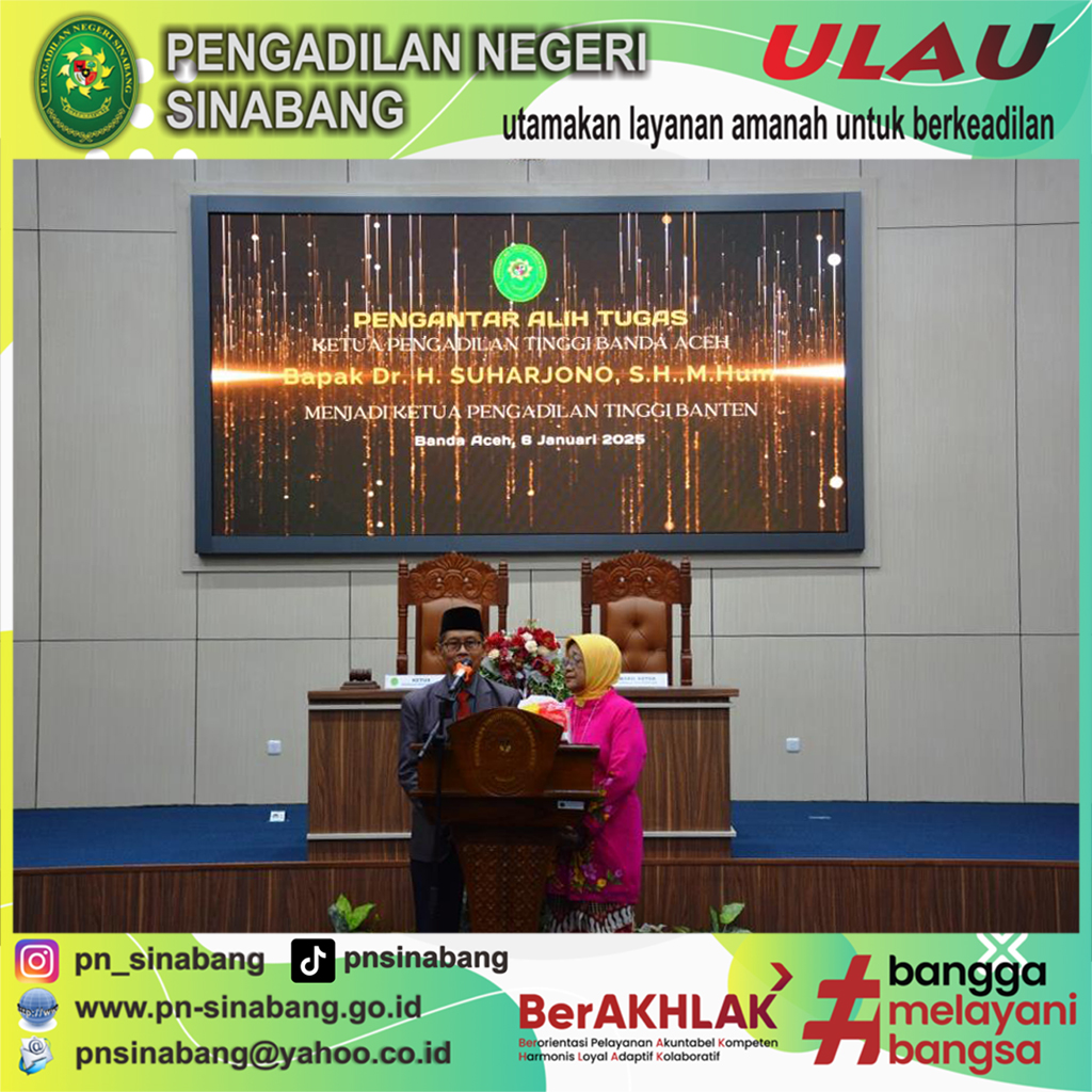 Sinabang-Humas: (6/1/2025) Yang Mulia Ketua dan Wakil Ketua Pengadilan Negeri Sinabang menghadiri "Pengantar Alih Tugas Yang Mulia Ketua Pengadilan Tinggi .......