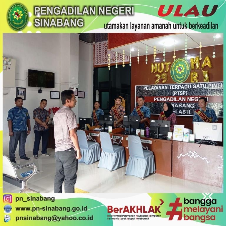 Pelaksanaan pemberian arahan kepada Petugas layanan PTSP pada Pengadilan Negeri Sinabang tersebut dilakukan berdasarkan SK Dirjen Badilum No. 114/DJU/SK.HM1.1/I/2024 tentang Pembaruan Pedoman Standar Pelayanan PTSP pada Pengadilan Tinggi dan Pengadilan Negeri.