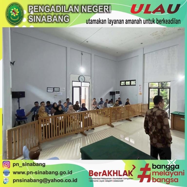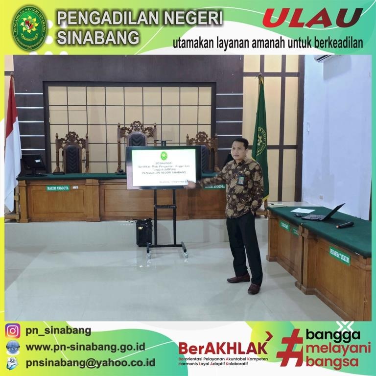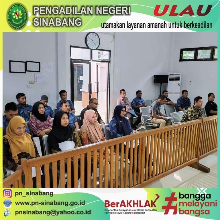 Kamis, 12 September 20024, Pengadilan Negeri Sinabang melaksanakan kegiatan Sosialisasi sertifikAsi Mutu Peradilan Ungguli dan tangguH (AMPUH) kepada seluruh Aparatur Pengadilan Negeri Sinabang.