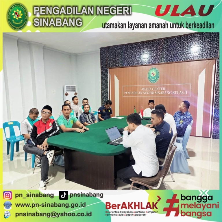 Kegiatan Tasyiah ini diikuti oleh Yang Mulia Ketua Pengadilan Negeri Sinabang, Para Hakim, Panitera, Para Panmud, Para Kasubbag, serta seluruh Staf pada Pengadilan Negeri Sinabang.