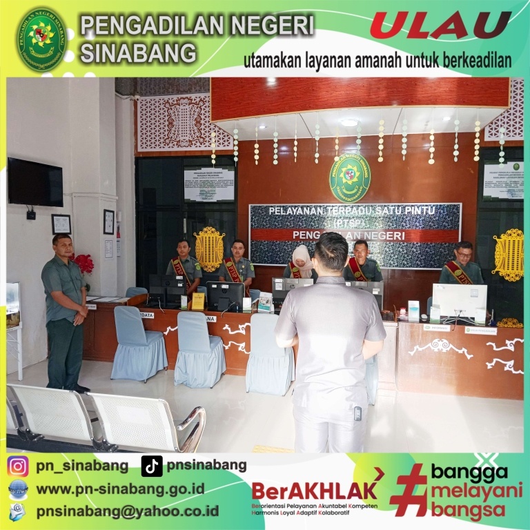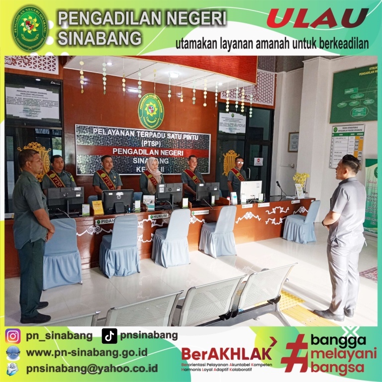 (7/1/2025) Pelaksanaan Briefing Pelayanan Terpadu Satu Pintu (PTSP) pada Pengadilan Negeri Sinabang yang dilakukan oleh Hakim Pengawas PTSP Bpk. Ahmad Ghali Pratama, S.H. serta diikuti oleh Para Petugas Layanan PTSP dan Petugas keamanan Pengadilan Negeri Sinabang.