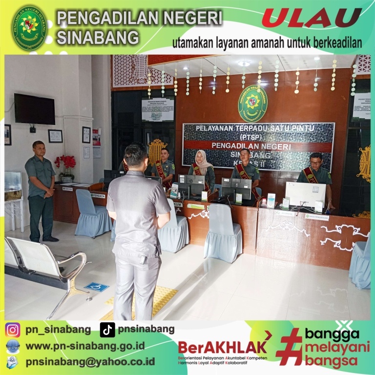 Pelaksanaan pemberian arahan kepada Petugas layanan PTSP pada Pengadilan Negeri Sinabang tersebut dilakukan berdasarkan SK Dirjen Badilum No. 114/DJU/SK.HM1.1/I/2024 tentang Pembaruan Pedoman Standar Pelayanan PTSP pada Pengadilan Tinggi dan Pengadilan Negeri.