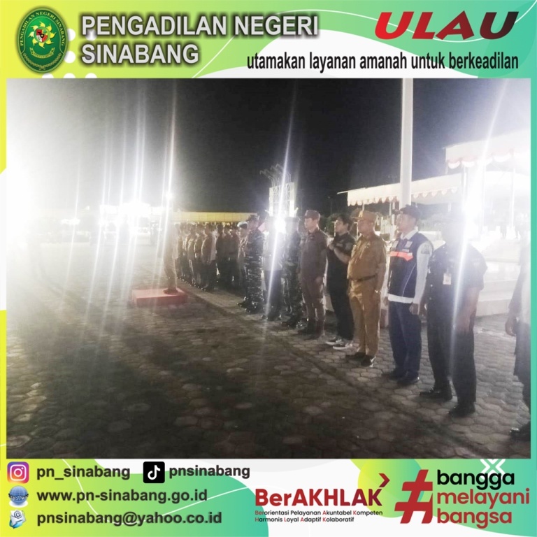 (25/11/2024), Yang Mulia Ketua Pengadilan Negeri Sinabang yang dalam hal ini diwakili oleh Bpk. Ahmad Ghali Pratama, S.H. selaku Hakim pada Pengadilan Negeri Sinabang, menghadiri kegiatan "Apel Patroli Gabungan Skala Besar dalam Rangka Pemilu Damai 2024 Kabupaten Simeulue".