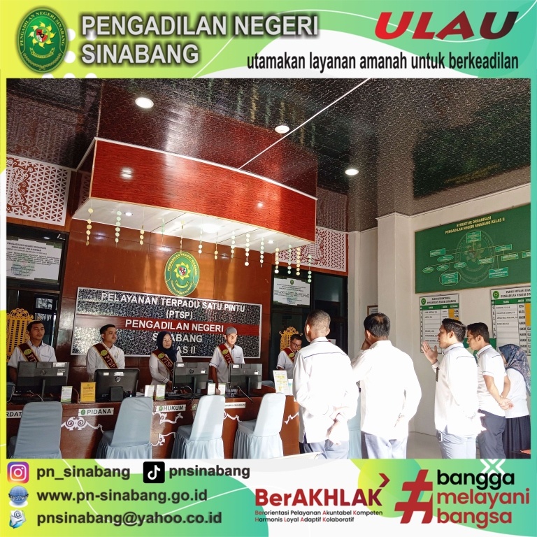Pelaksanaan pemberian arahan kepada Petugas layanan PTSP pada Pengadilan Negeri Sinabang tersebut dilakukan berdasarkan SK Dirjen Badilum No. 114/DJU/SK.HM1.1/I/2024 tentang Pembaruan Pedoman Standar Pelayanan PTSP