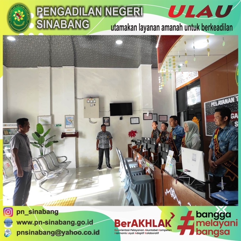 (19/9/2024) Pelaksanaan Briefing Pelayanan Terpadu Satu Pintu (PTSP) pada Pengadilan Negeri Sinabang yang dilakukan oleh Panmud Hukum Pengadilan Negeri Sinabang Bpk. Mulyadi, A.Md. yang merupakan penanggungjawab pelayanan PTSP Pengadilan pada hari tersebut serta diikuti oleh Para Petugas Layanan PTSP dan Petugas keamanan PN Sinabang.