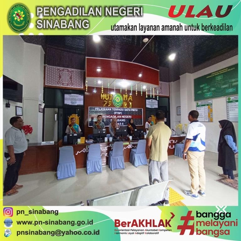 (6/9/2024) Pelaksanaan Briefing Pelayanan Terpadu Satu Pintu (PTSP) pada Pengadilan Negeri Sinabang yang dilakukan oleh Para penanggungjawab pelayanan PTSP Pengadilan Negeri Sinabang, yakni Kasub Umum & Keuangan, serta diikuti oleh Para Petugas Layanan PTSP dan Petugas keamanan PN Sinabang.