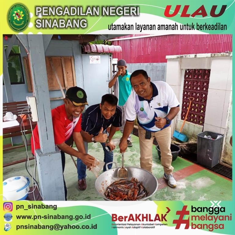 Jumat, 6 September 2024 telah dilaksanakan kegiatan Jumat Ceria Pengadilan Negeri Sinabang. Adapun kegiatan Jumat Ceria dalam kesempatan kali ini adalah memasak dan makan bersama yang diikuti seluruh Warga Pengadilan Negeri Sinabang.
