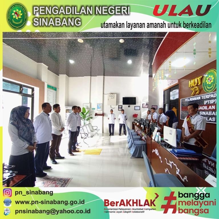 (9/9/2024) Pelaksanaan Briefing Pelayanan Terpadu Satu Pintu (PTSP) pada Pengadilan Negeri Sinabang yang dilakukan oleh Hakim Pengawas PTSP dan didampingi oleh Para penanggungjawab pelayanan PTSP Pengadilan Negeri Sinabang, yakni Panitera, Sekretaris, Para Panmud, dan Kasub Umum & Keuangan, serta diikuti oleh Para Petugas Layanan PTSP dan Petugas keamanan PN Sinabang.