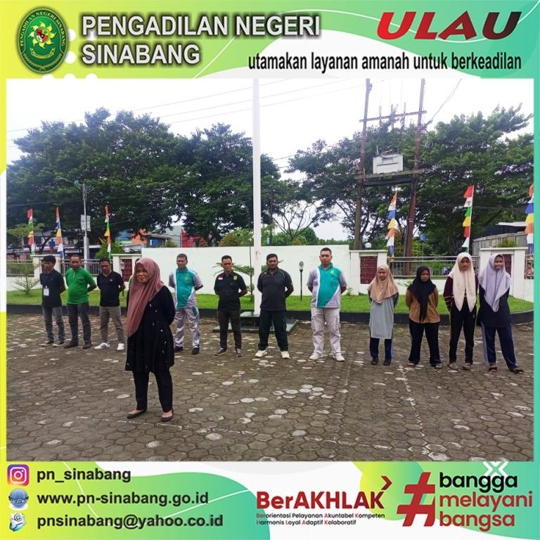 Jumat, 30 Agustus 2024 telah dilaksanakan kegiatan Apel Sore dengan Pembina Apel yakni Yang Mulia Ketua Pengadilan Negeri Sinabang, Bpk. Riswandy, S.H., M.H. adapun peserta kegiatan Apel Sore tersebut diikuti oleh Wakil Ketua PN Sinabang, Para Hakim, Sekretaris, Para Pejabat Struktural, Para Pejabat Fungsional, dan Para Staf, serta diikuti oleh seluruh keluarga besar Pengadilan Negeri Sinabang.