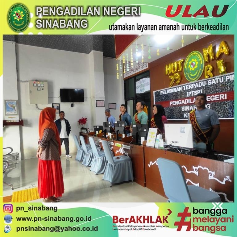 Pelaksanaan pemberian arahan kepada Petugas layanan PTSP pada Pengadilan Negeri Sinabang tersebut dilakukan berdasarkan SK Dirjen Badilum No. 114/DJU/SK.HM1.1/I/2024 tentang Pembaruan Pedoman Standar Pelayanan PTSP pada Pengadilan Tinggi dan Pengadilan Negeri.