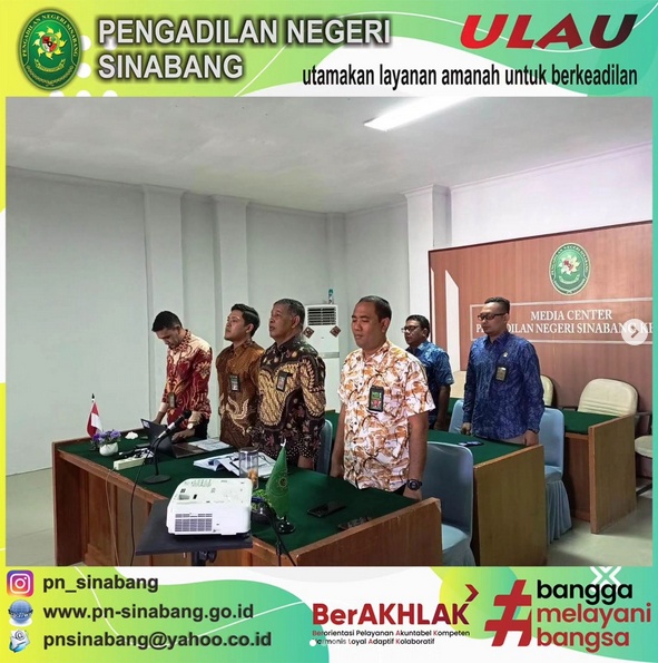 Kamis, 2 Mei 2024, bertempat di Ruang Teleconference Pengadilan Negeri Sinabang, YM Ketua PN Sinabang, Wakil Ketua, Para Hakim, Sekretaris, dan Staf Bagian PTIP selaku Tim Evaluator SAKIP Pengadilan Negeri Sinabang mengikuti kegiatan Pembukaan Evaluasi Laporan Kinerjanya Tahun 2023 melalui Aplikasi Sistem Evaluasi dan Monitoring Akuntabilitas Kinerja (seMAr) pada bulan Mei 2024 yang dilaksanakan secara daring melalui Zoom Meeting oleh Pengadilan Tinggi Banda Aceh.
